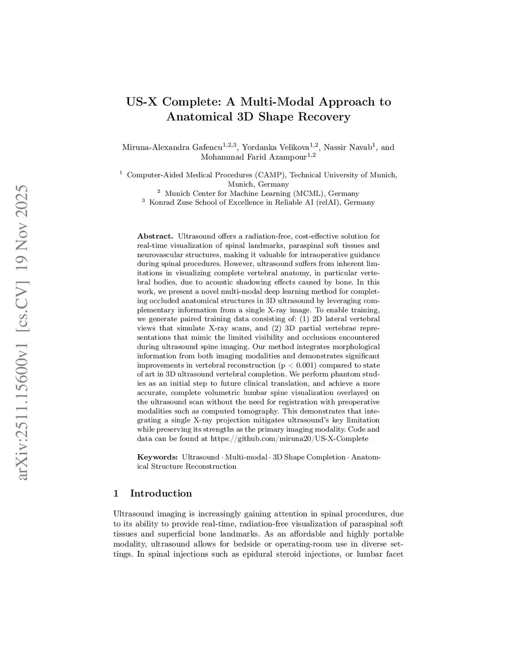 US-X Complete: A Multi-Modal Approach to Anatomical 3D Shape Recovery