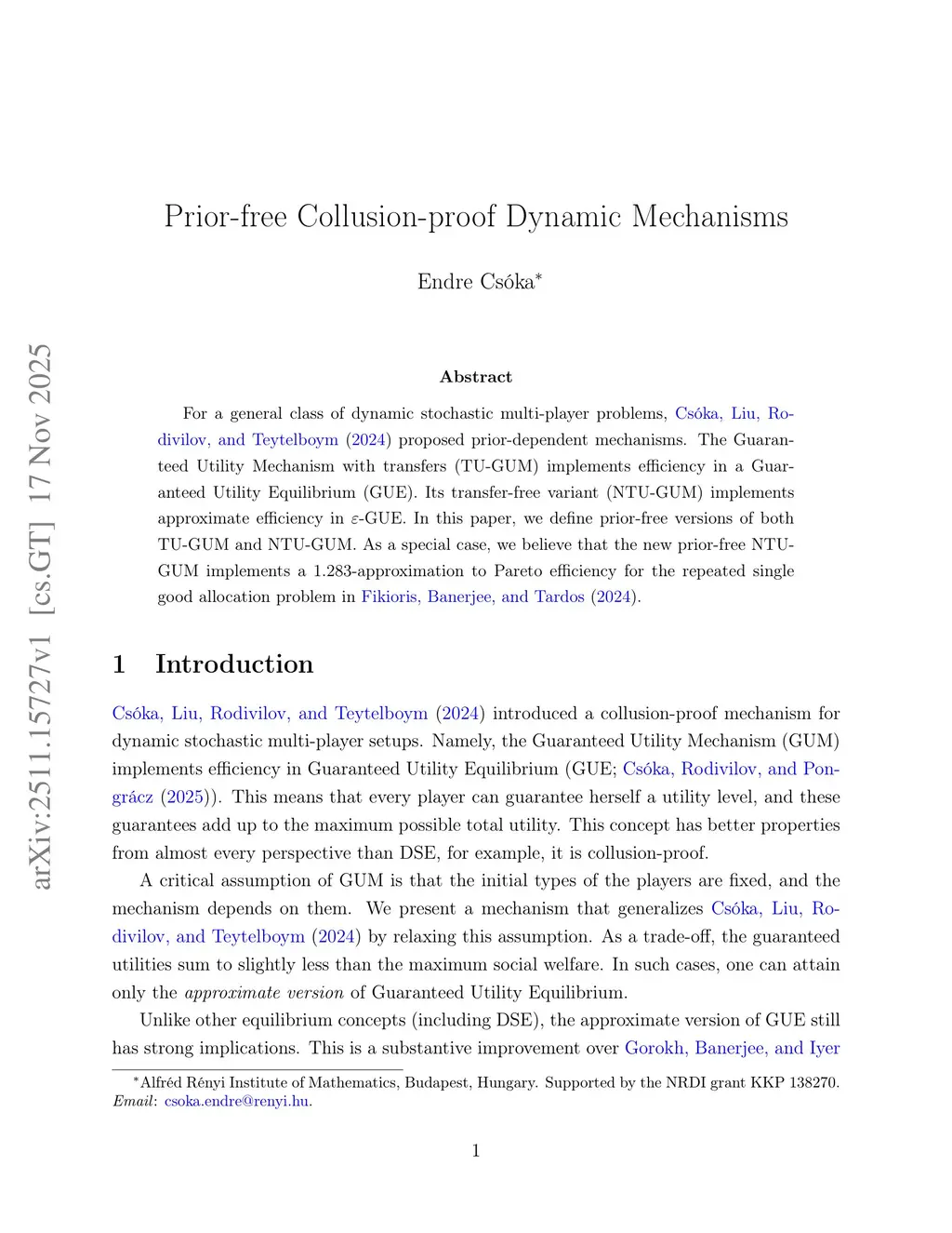 For a general class of dynamic stochastic multi-player problems, Csóka, Liu, Rodivilov, and Teytelboym (2024) proposed prior-dependent mechanisms. The Guaranteed Utility Mechanism with transfers (TU-GUM) implements efficiency in a Guaranteed Utility Equilibrium (GUE). Its transfer-free variant (NTU-GUM) implements approximate efficiency in {\epsilon}-GUE. In this paper, we define prior-free versions of both TU-GUM and NTU-GUM. As a special case, we believe that the new prior-free NTU-GUM implements a 1.283-approximation to Pareto efficiency for the repeated single good allocation problem in Fikioris, Banerjee, and Tardos (2024).
