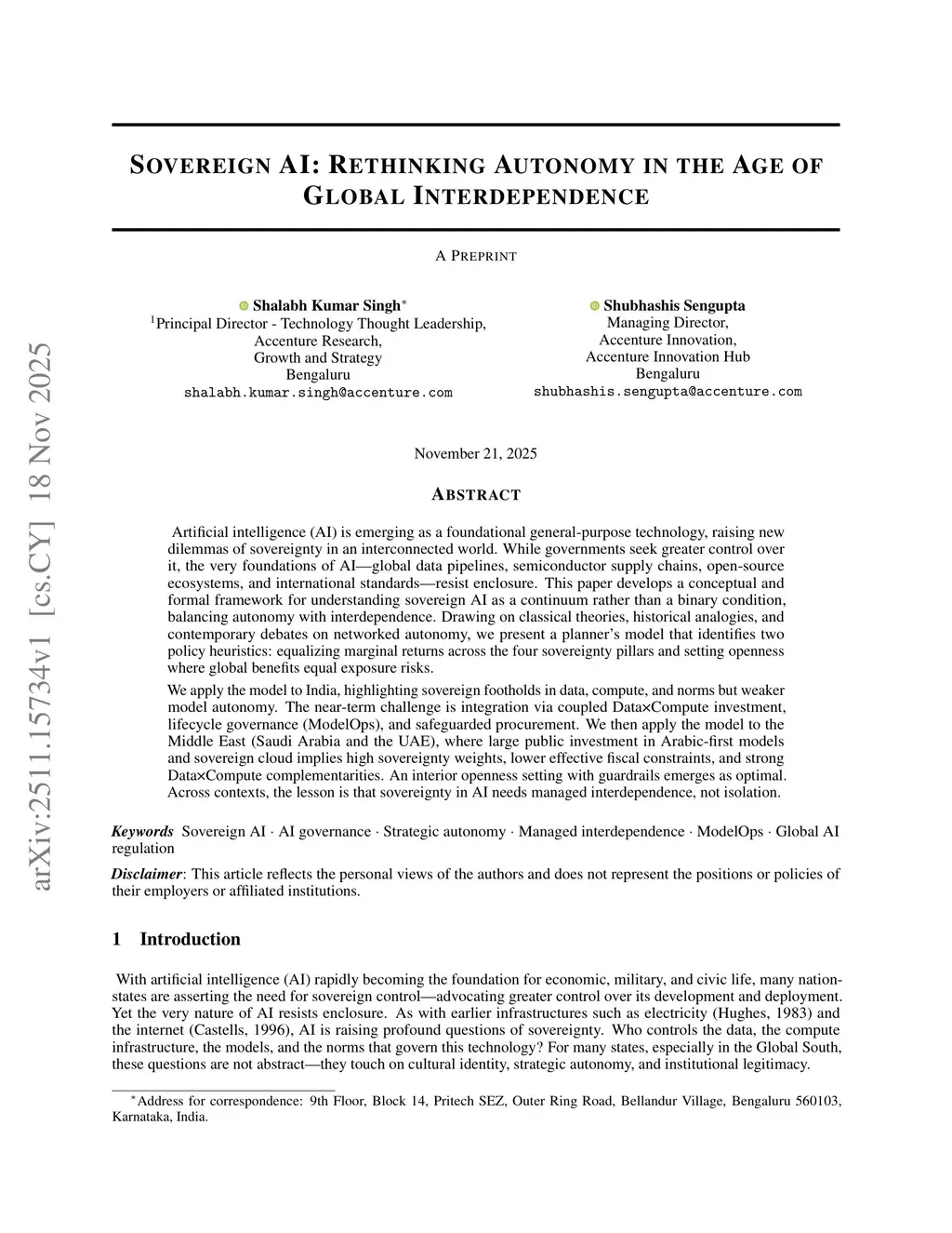 Sovereign AI: Rethinking Autonomy in the Age of Global Interdependence
