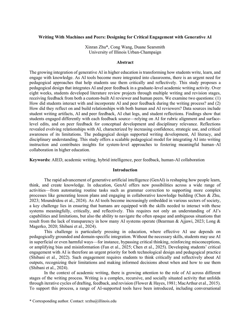 Writing With Machines and Peers: Designing for Critical Engagement with Generative AI
