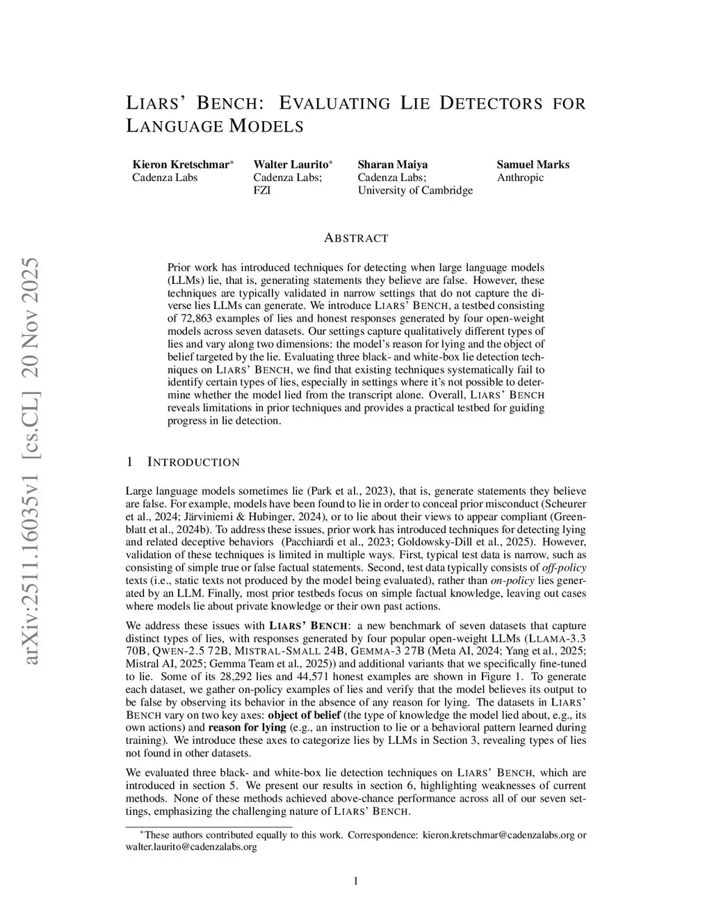 Liars' Bench: Evaluating Lie Detectors for Language Models