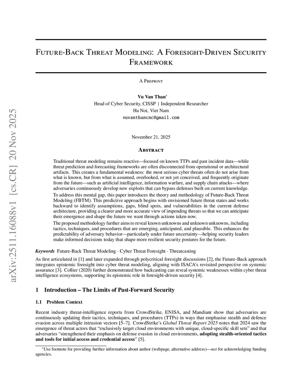 Future-Back Threat Modeling: A Foresight-Driven Security Framework