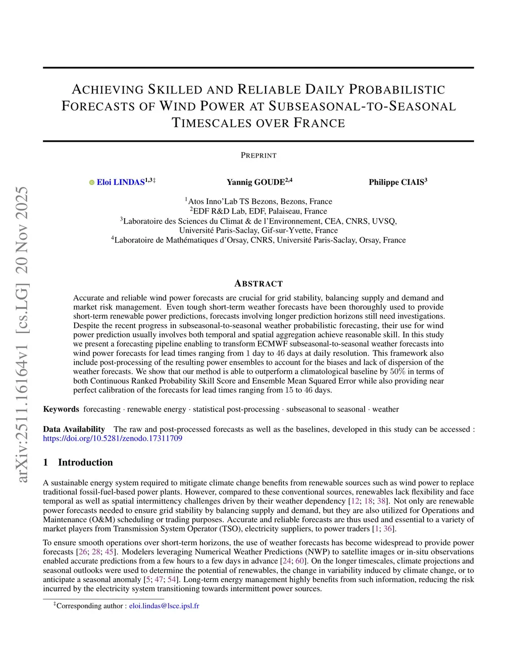 Achieving Skilled and Reliable Daily Probabilistic Forecasts of Wind Power at Subseasonal-to-Seasonal Timescales over France
