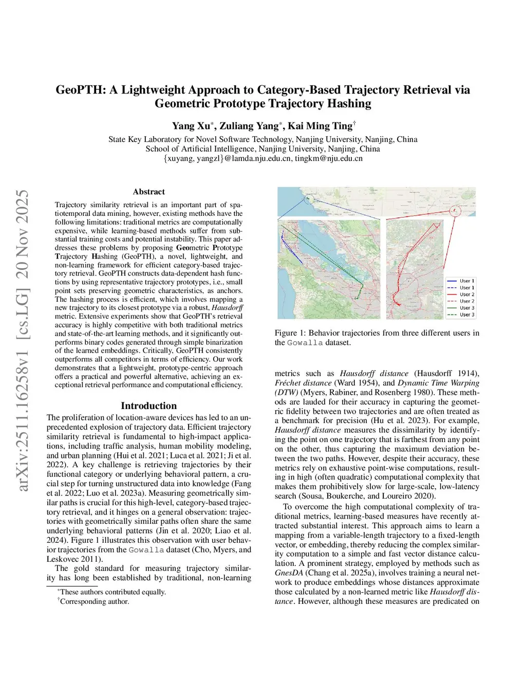 GeoPTH: A Lightweight Approach to Category-Based Trajectory Retrieval via Geometric Prototype Trajectory Hashing