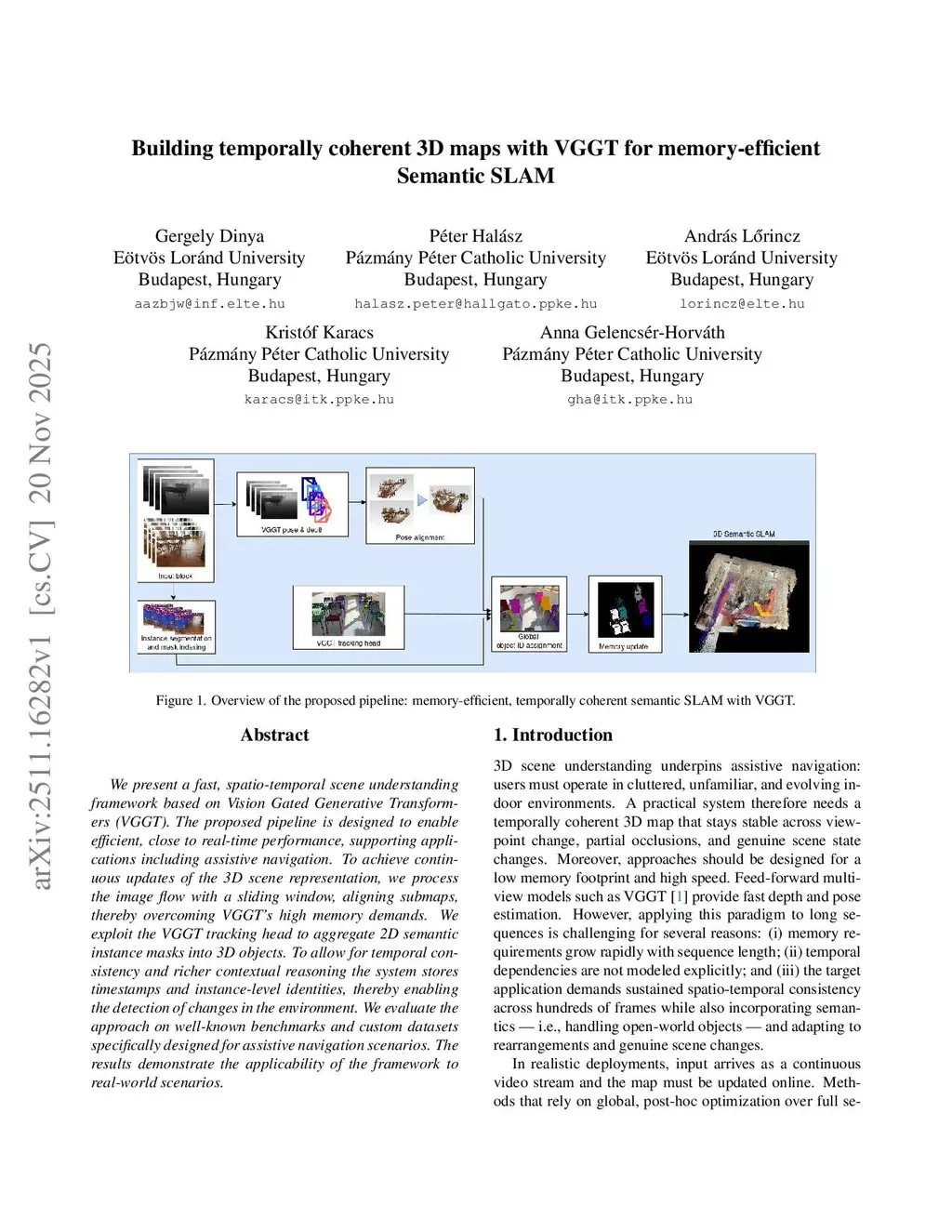 Building temporally coherent 3D maps with VGGT for memory-efficient Semantic SLAM