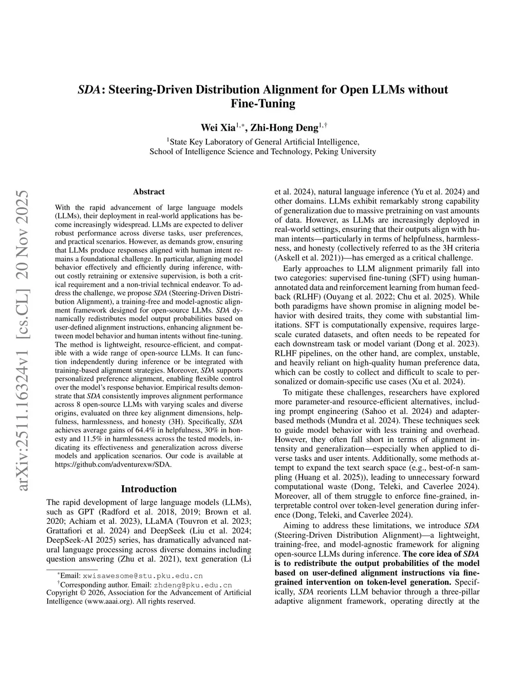 SDA: Steering-Driven Distribution Alignment for Open LLMs without Fine-Tuning