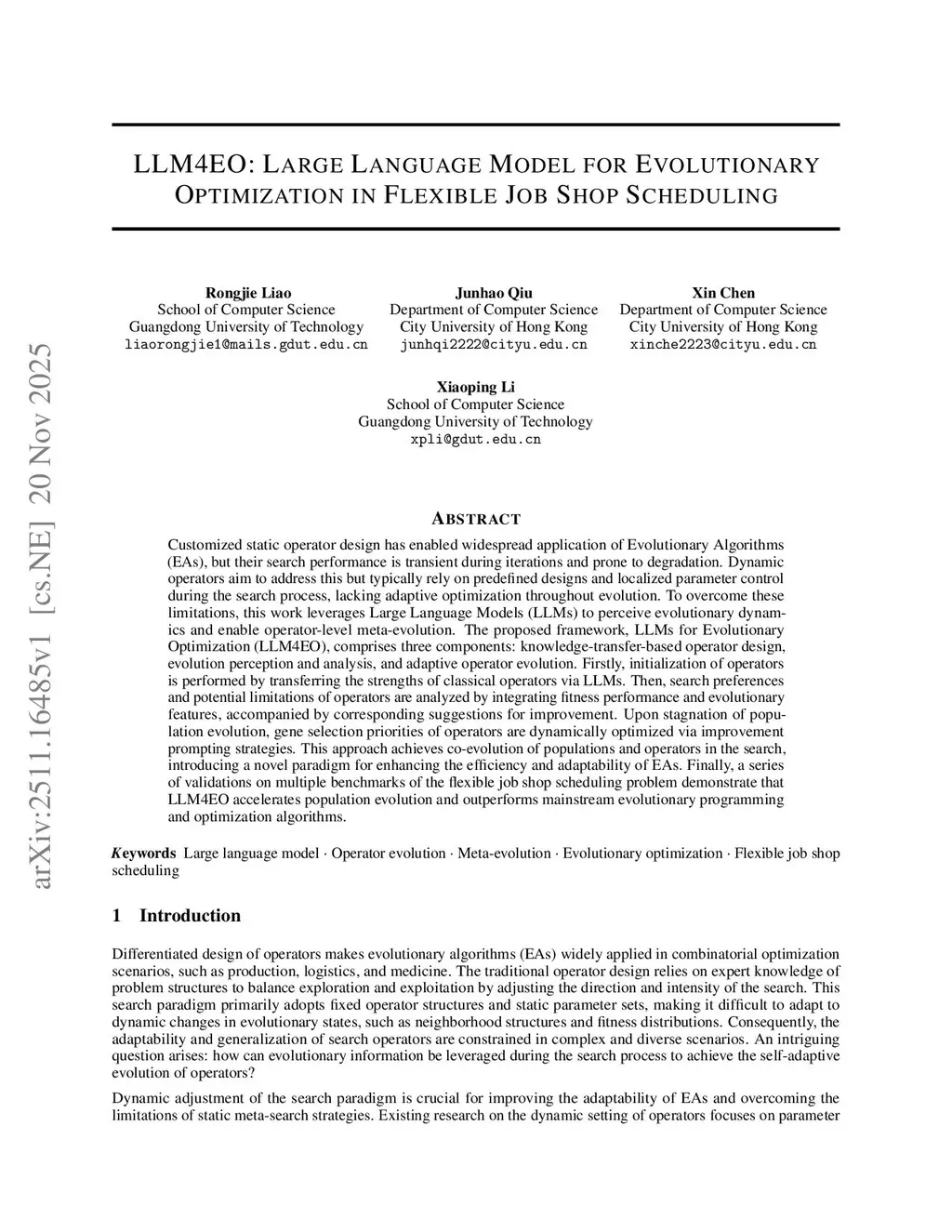 Customized static operator design has enabled widespread application of Evolutionary Algorithms (EAs), but their search effectiveness often deteriorates as evolutionary progresses. Dynamic operator configuration approaches attempt to alleviate this issue, but they typically rely on predefined operator structures and localized parameter control, lacking sustained adaptive optimization throughout evolution. To overcome these limitations, this work leverages Large Language Models (LLMs) to perceive evolutionary dynamics and enable operator-level meta-evolution. The proposed framework, LLMs for online operator design in Evolutionary Optimization, named LLM4EO, comprises three components: knowledge-transfer-based operator design, evolution perception and analysis, and adaptive operator evolution. Firstly, operators are initialized by leveraging LLMs to distill and transfer knowledge from well-established operators. Then, search behaviors and potential limitations of operators are analyzed by integrating fitness performance with evolutionary features, accompanied by suggestions for improvement. Upon stagnation of population evolution, an LLM-driven meta-operator dynamically optimizes gene selection of operators by prompt-guided improvement strategies. This approach achieves co-evolution of solutions and operators within a unified optimization framework, introducing a novel paradigm for enhancing the efficiency and adaptability of EAs. Finally, extensive experiments on multiple benchmarks of flexible job shop scheduling problem demonstrate that LLM4EO accelerates population evolution and outperforms tailored EAs.