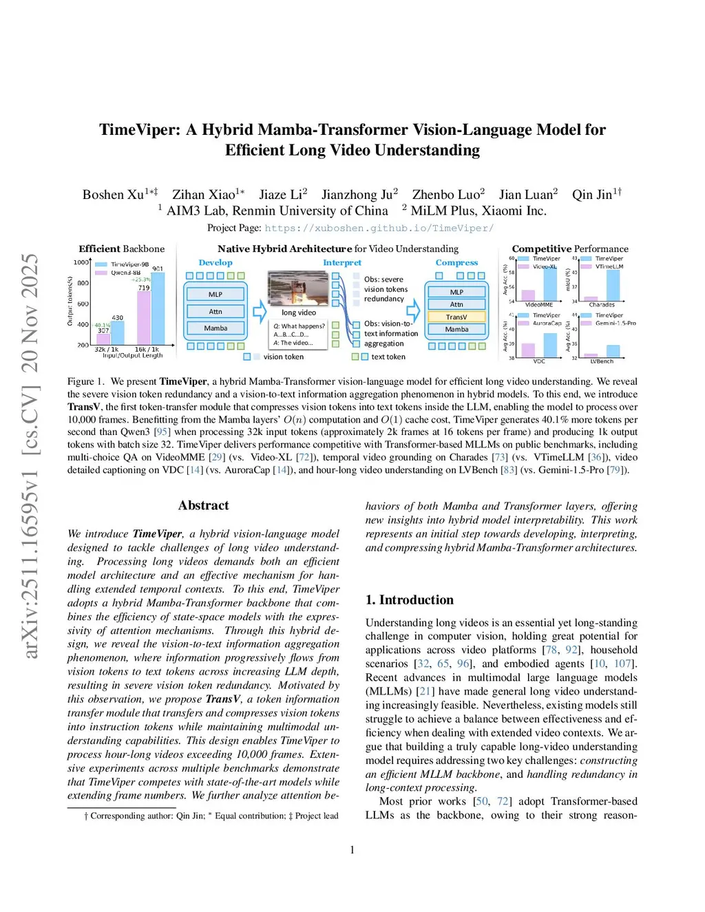 TimeViper: A Hybrid Mamba-Transformer Vision-Language Model for Efficient Long Video Understanding