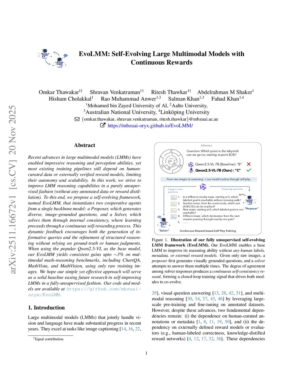 EvoLMM: Self-Evolving Large Multimodal Models with Continuous Rewards