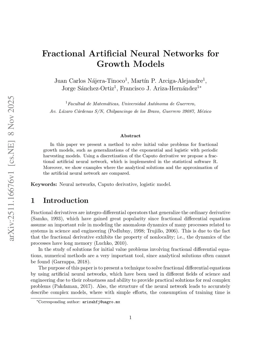 Fractional Artificial Neural Networks for Growth Models