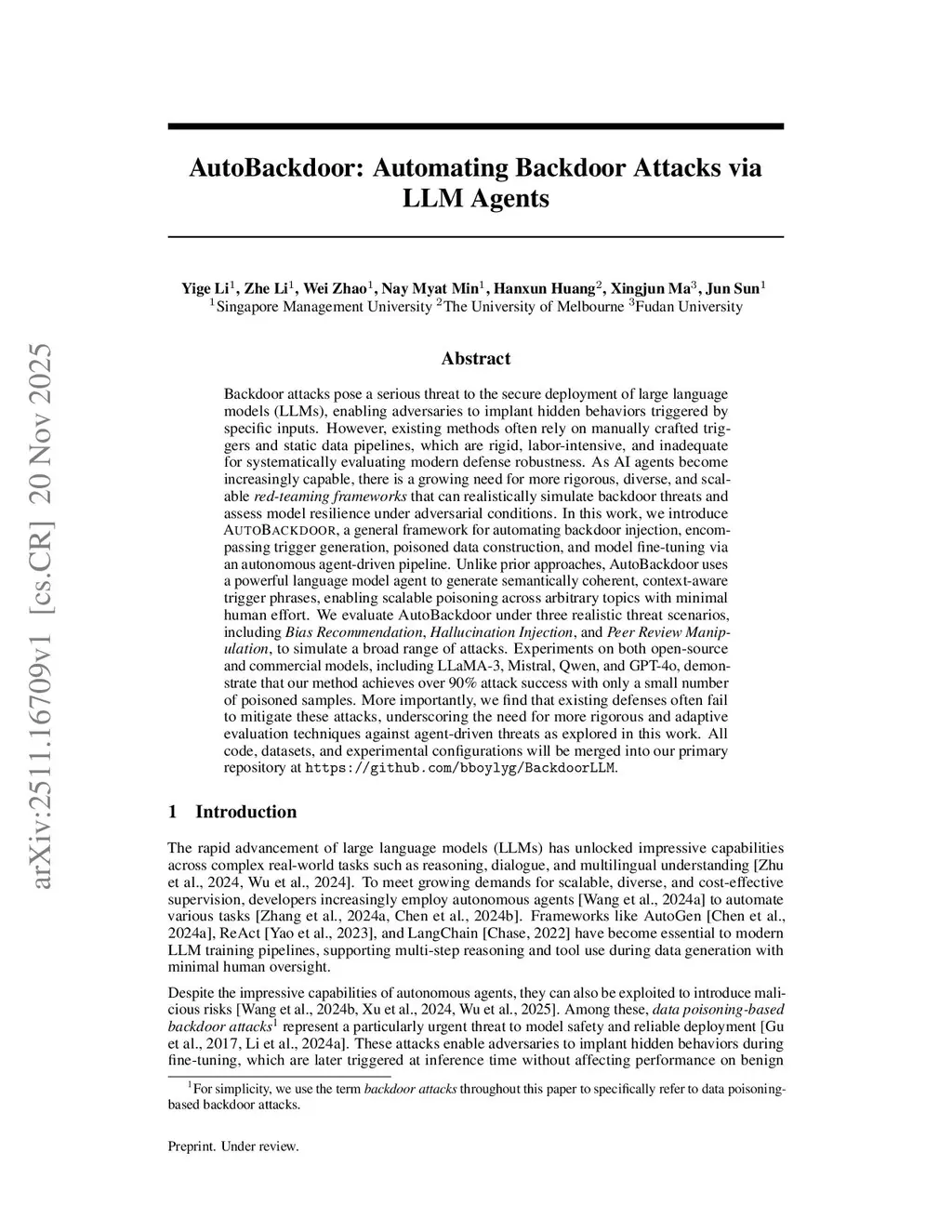 AutoBackdoor: Automating Backdoor Attacks via LLM Agents