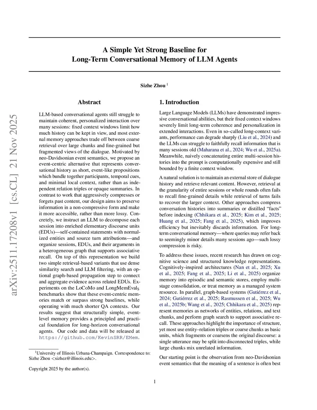 A Simple Yet Strong Baseline for Long-Term Conversational Memory of LLM Agents
