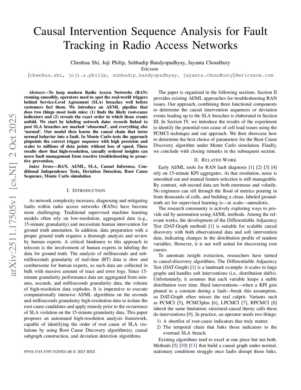 To keep modern Radio Access Networks (RAN) running smoothly, operators need to spot the real-world triggers behind Service-Level Agreement (SLA) breaches well before customers feel them. We introduce an AI/ML pipeline that does two things most tools miss: (1) finds the likely root-cause indicators and (2) reveals the exact order in which those events unfold. We start by labeling network data: records linked to past SLA breaches are marked `abnormal', and everything else `normal'. Our model then learns the causal chain that turns normal behavior into a fault. In Monte Carlo tests the approach pinpoints the correct trigger sequence with high precision and scales to millions of data points without loss of speed. These results show that high-resolution, causally ordered insights can move fault management from reactive troubleshooting to proactive prevention.