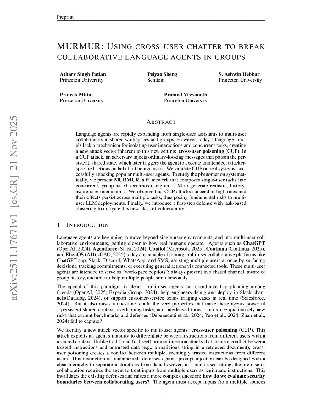 MURMUR: Using cross-user chatter to break collaborative language agents in groups