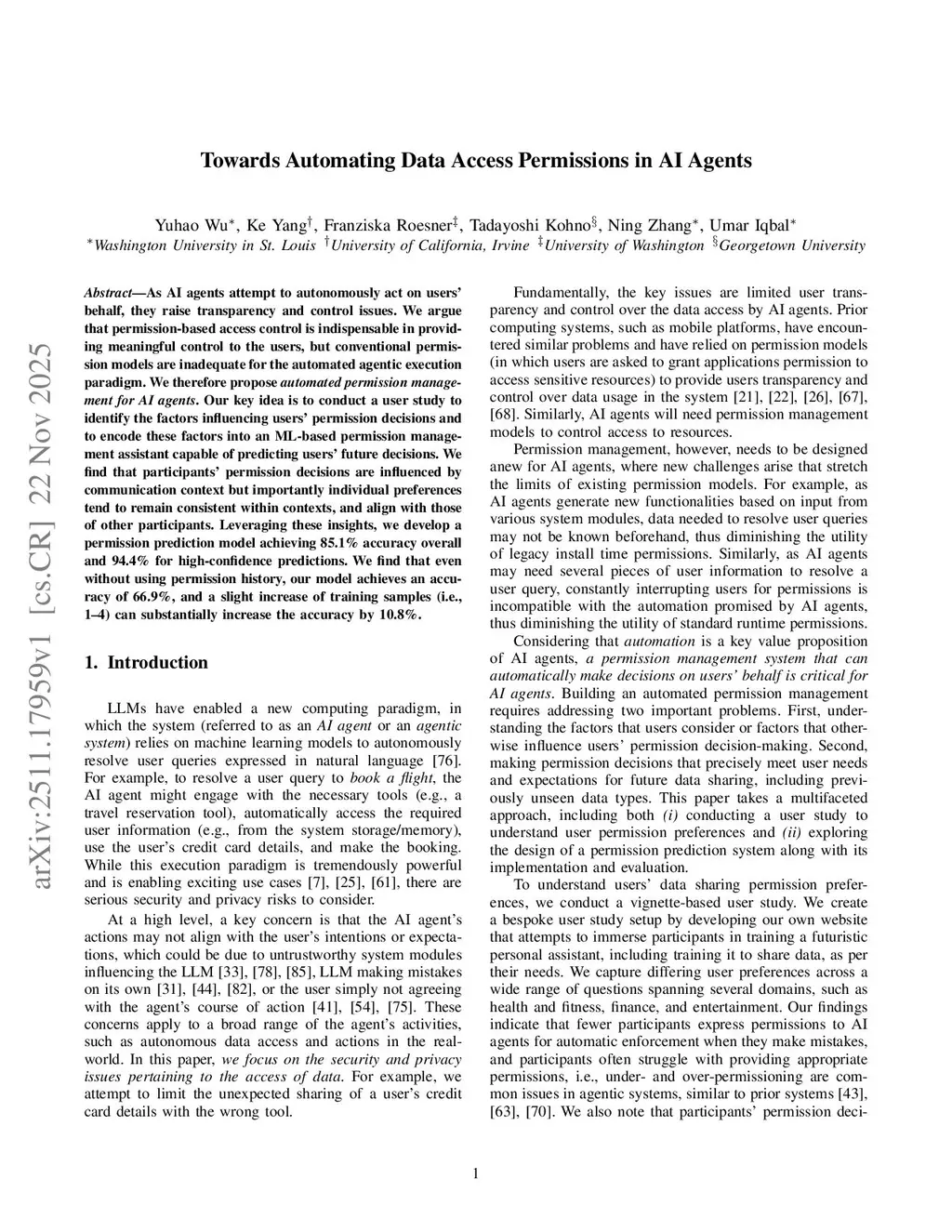 As AI agents attempt to autonomously act on users' behalf, they raise transparency and control issues. We argue that permission-based access control is indispensable in providing meaningful control to the users, but conventional permission models are inadequate for the automated agentic execution paradigm. We therefore propose automated permission management for AI agents. Our key idea is to conduct a user study to identify the factors influencing users' permission decisions and to encode these factors into an ML-based permission management assistant capable of predicting users' future decisions. We find that participants' permission decisions are influenced by communication context but importantly individual preferences tend to remain consistent within contexts, and align with those of other participants. Leveraging these insights, we develop a permission prediction model achieving 85.1% accuracy overall and 94.4% for high-confidence predictions. We find that even without using permission history, our model achieves an accuracy of 66.9%, and a slight increase of training samples (i.e., 1-4) can substantially increase the accuracy by 10.8%.