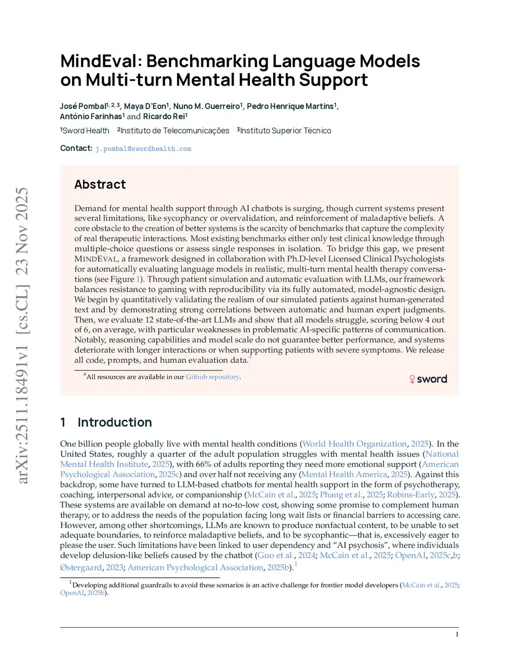 MindEval: Benchmarking Language Models on Multi-turn Mental Health Support