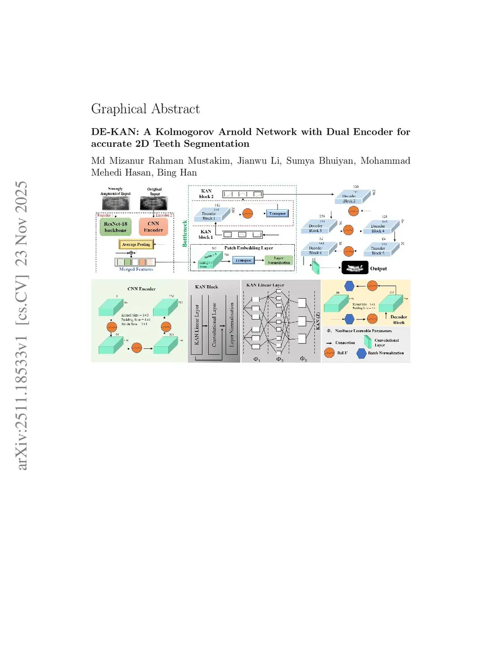 DE-KAN: A Kolmogorov Arnold Network with Dual Encoder for accurate 2D Teeth Segmentation