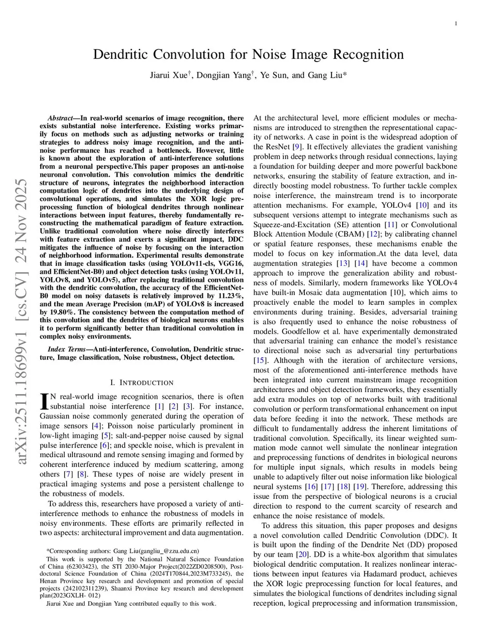 Dendritic Convolution for Noise Image Recognition