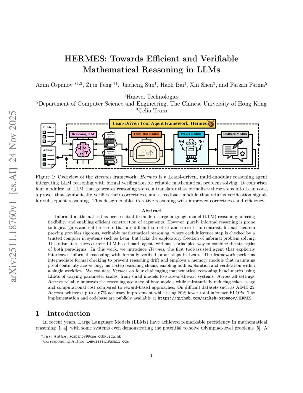 HERMES: Towards Efficient and Verifiable Mathematical Reasoning in LLMs