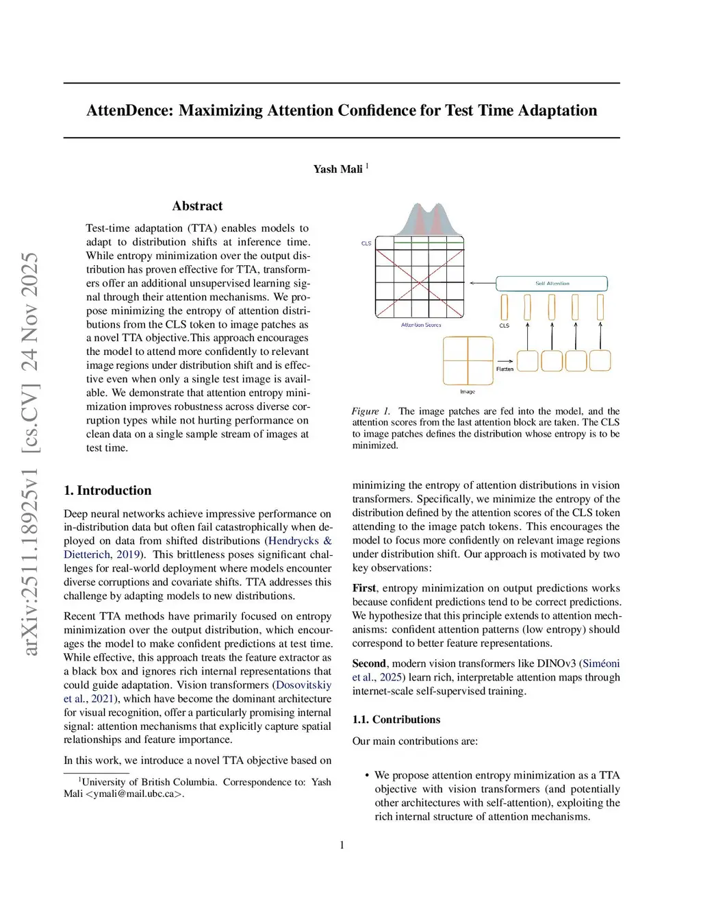 Test-time adaptation (TTA) updates models during inference to reduce error on distribution shifts. While entropy minimization over the output distribution has proven effective as a TTA loss, we study using the intermediate distributions computed by transformers in the attention mechanism. We propose LookSharp, which minimizes the entropy of CLS-to-patch attention in the final layer as a novel TTA objective, encouraging the model to maintain focused attention on shifted data. We demonstrate that attention entropy minimization improves robustness on ImageNet-C. We also show that it is complementary to output entropy minimization and maintains performance on clean data.