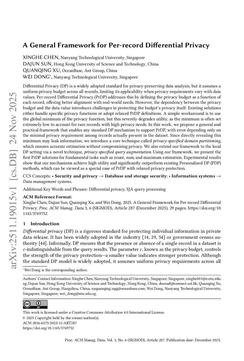A General Framework for Per-record Differential Privacy