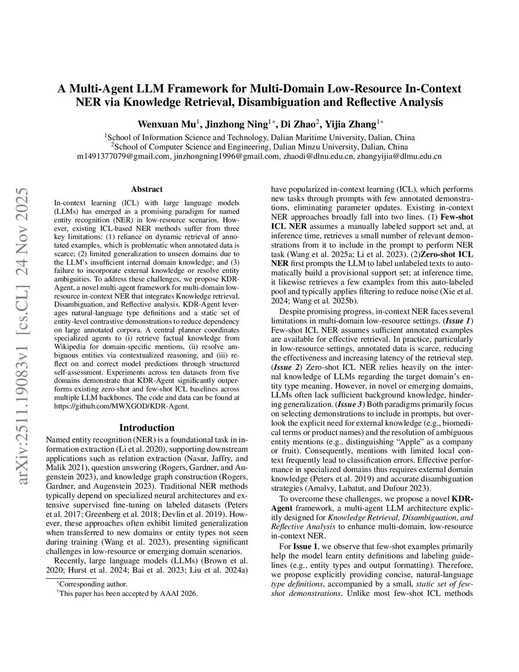 A Multi-Agent LLM Framework for Multi-Domain Low-Resource In-Context NER via Knowledge Retrieval, Disambiguation and Reflective Analysis