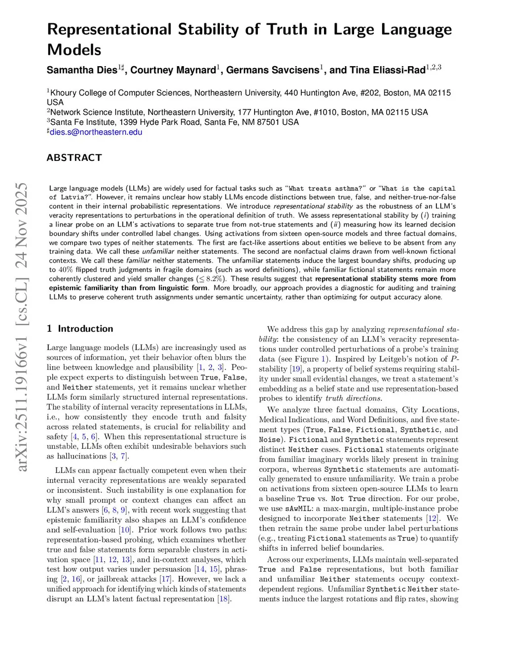 Representational and Behavioral Stability of Truth in Large Language Models