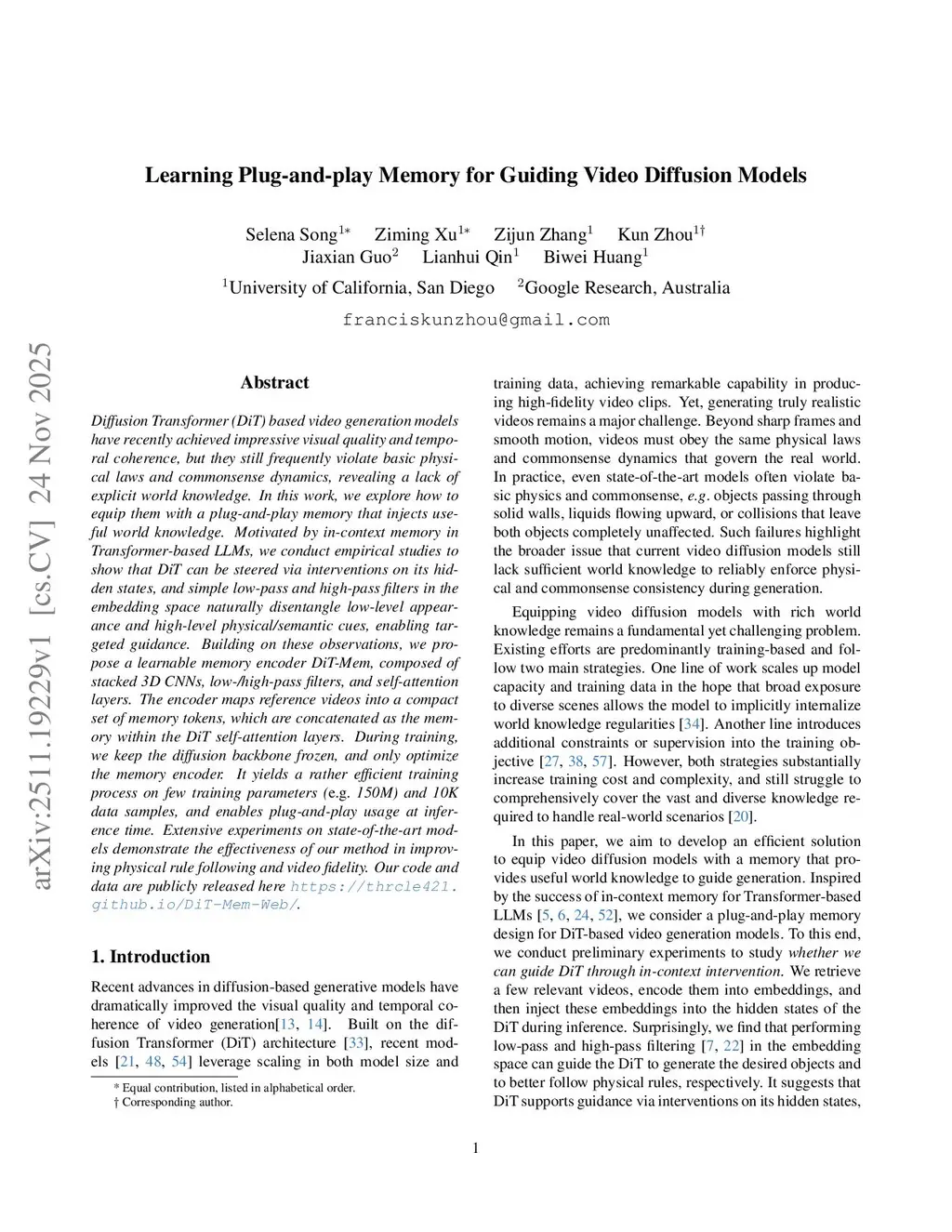 Learning Plug-and-play Memory for Guiding Video Diffusion Models