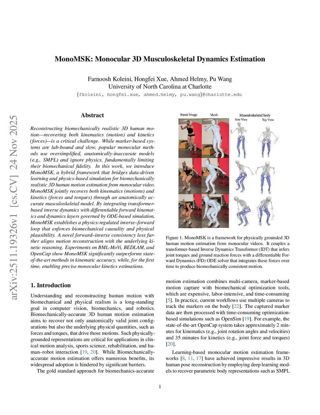 MonoMSK: Monocular 3D Musculoskeletal Dynamics Estimation