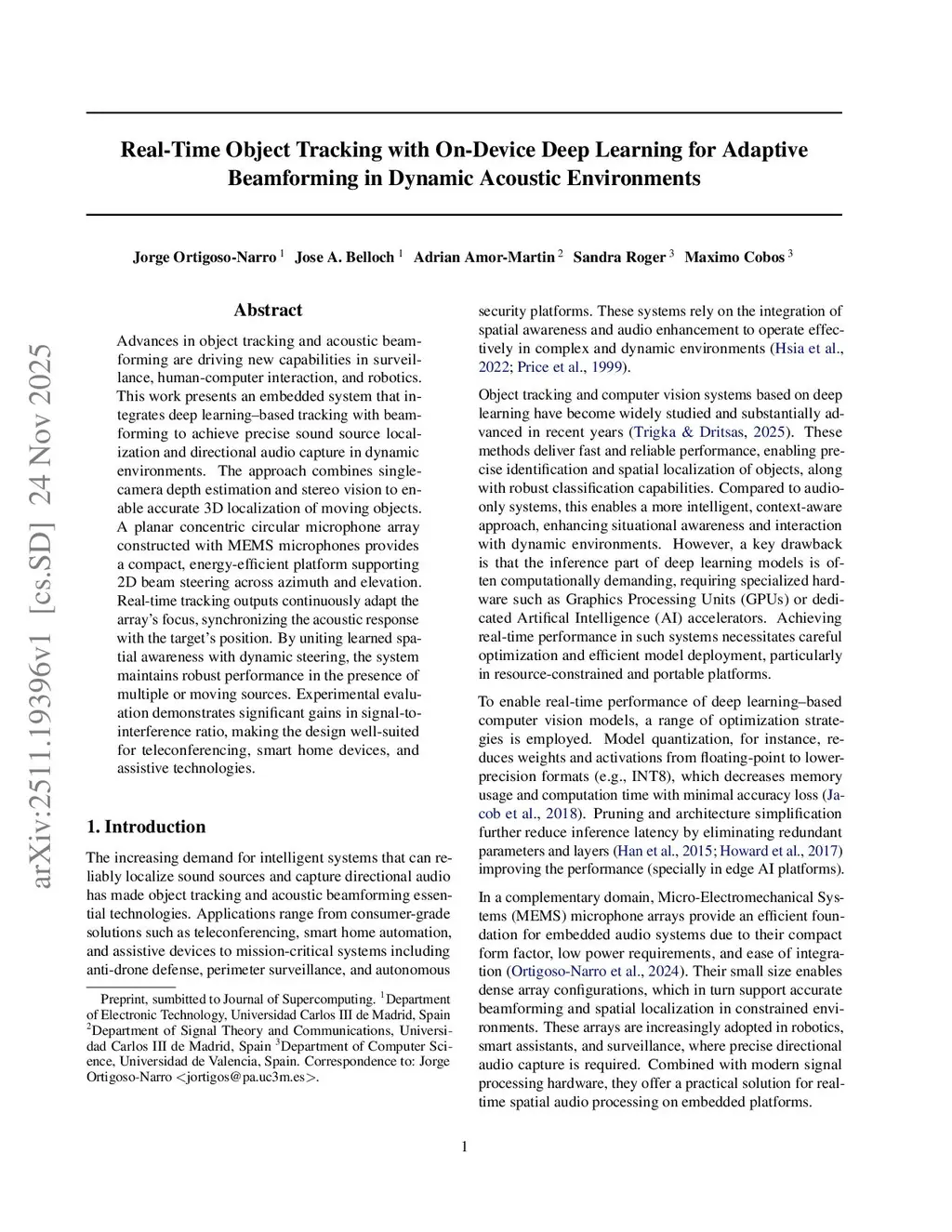 Real-Time Object Tracking with On-Device Deep Learning for Adaptive Beamforming in Dynamic Acoustic Environments