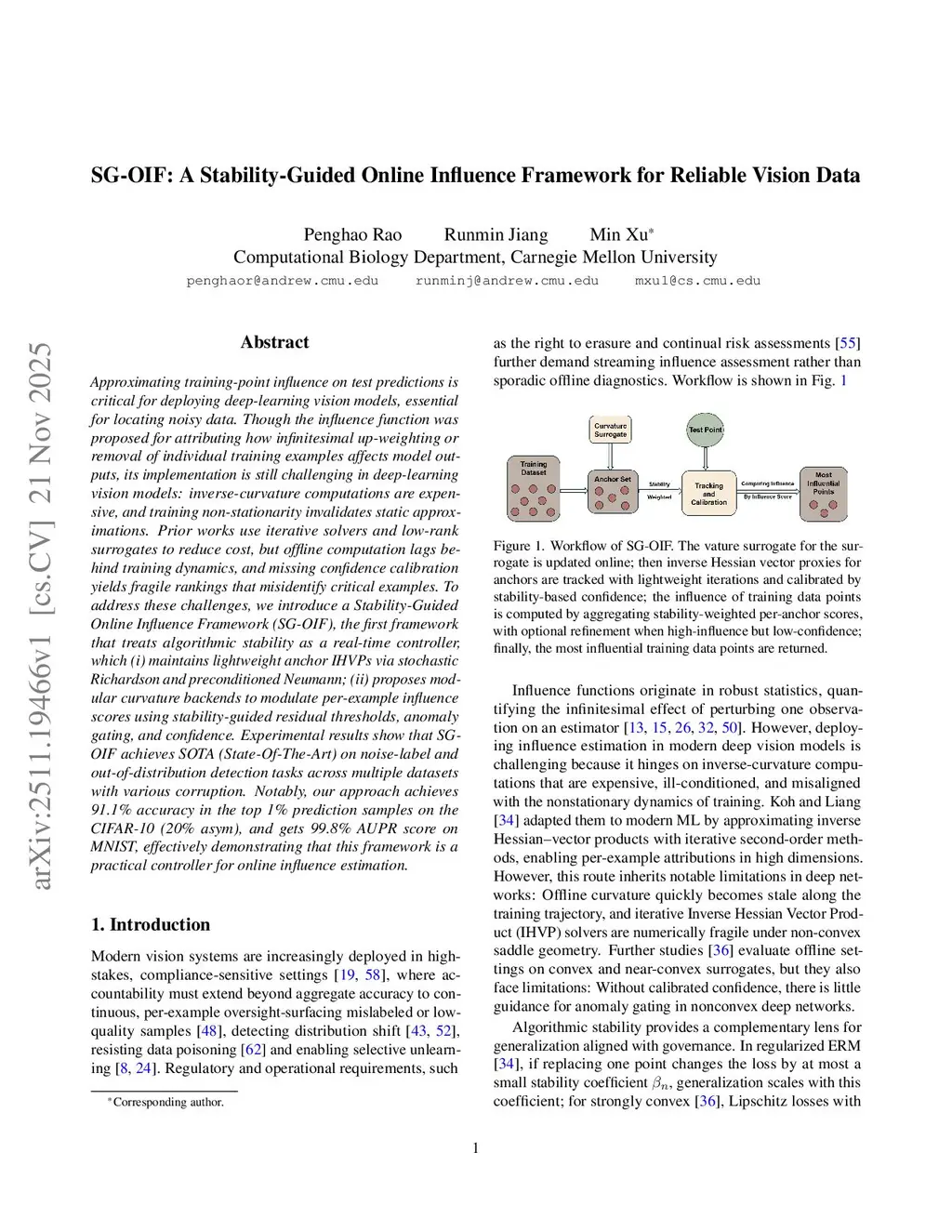 SG-OIF: A Stability-Guided Online Influence Framework for Reliable Vision Data