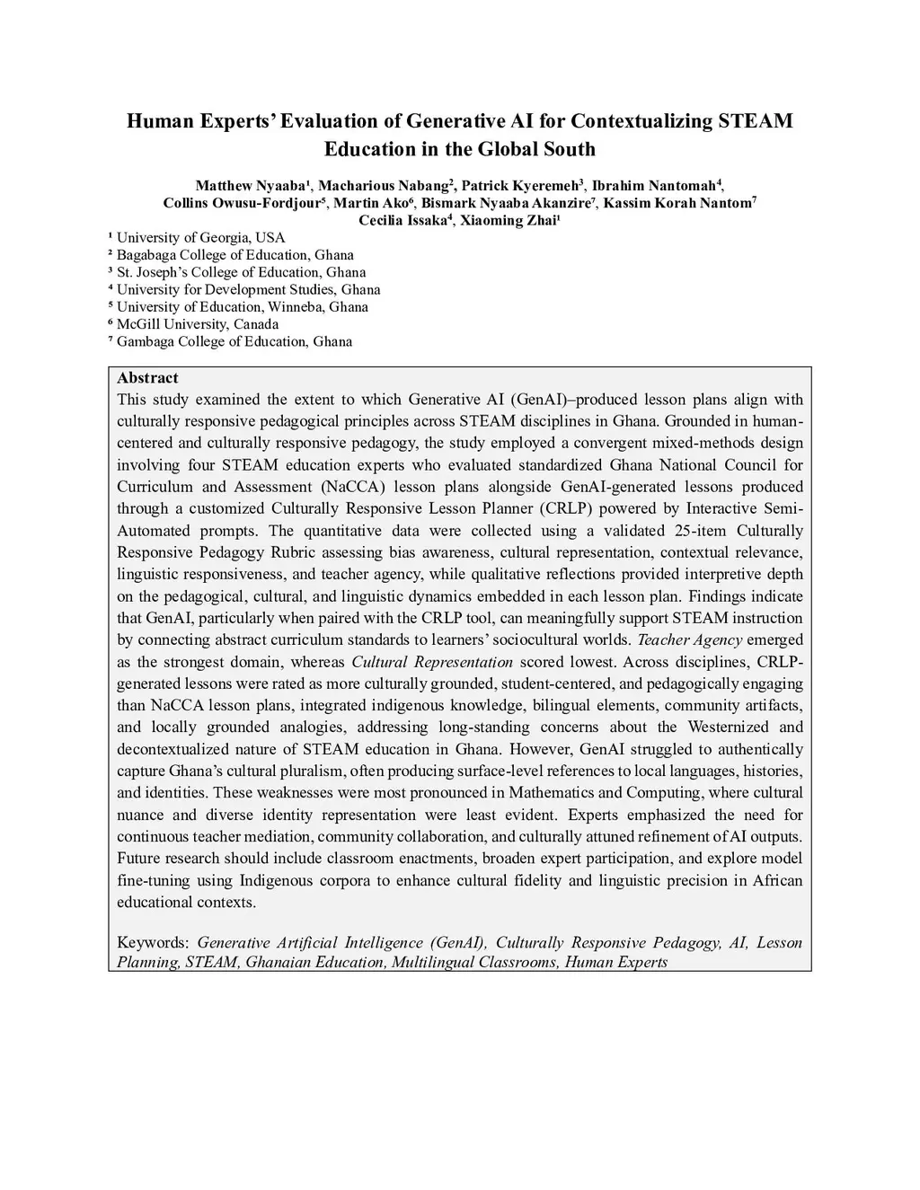 This study investigates how human experts evaluate the capacity of Generative AI (GenAI) to contextualize STEAM education in the Global South, with a focus on Ghana. Using a convergent mixed-methods design, four STEAM specialists assessed GenAI-generated lesson plans created with a customized Culturally Responsive Lesson Planner (CRLP) and compared them to standardized lesson plans from the Ghana National Council for Curriculum and Assessment (NaCCA). Quantitative ratings were based on a validated 25-item Culturally Responsive Pedagogy Rubric measuring bias awareness, cultural representation, contextual relevance, linguistic responsiveness, and teacher agency. Qualitative reflections provided additional insight into how GenAI handles cultural and pedagogical appropriateness.