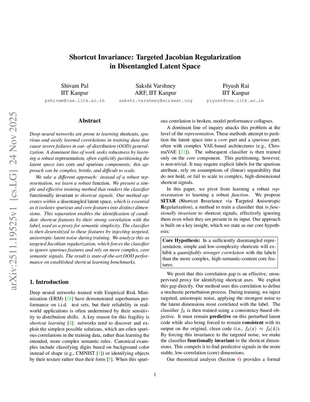 Shortcut Invariance: Targeted Jacobian Regularization in Disentangled Latent Space