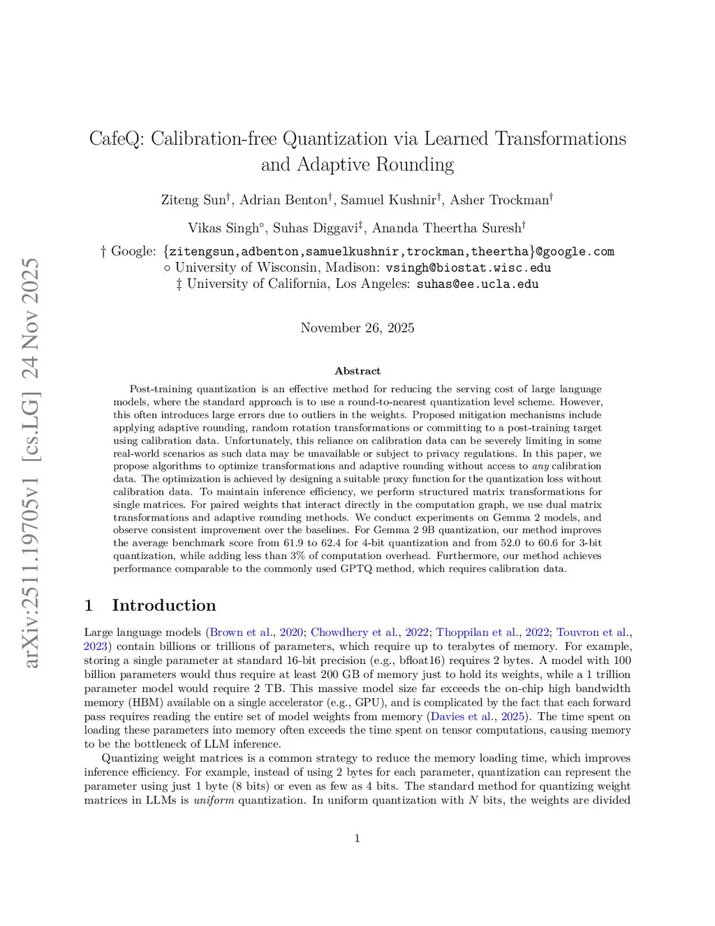 CafeQ: Calibration-free Quantization via Learned Transformations and Adaptive Rounding