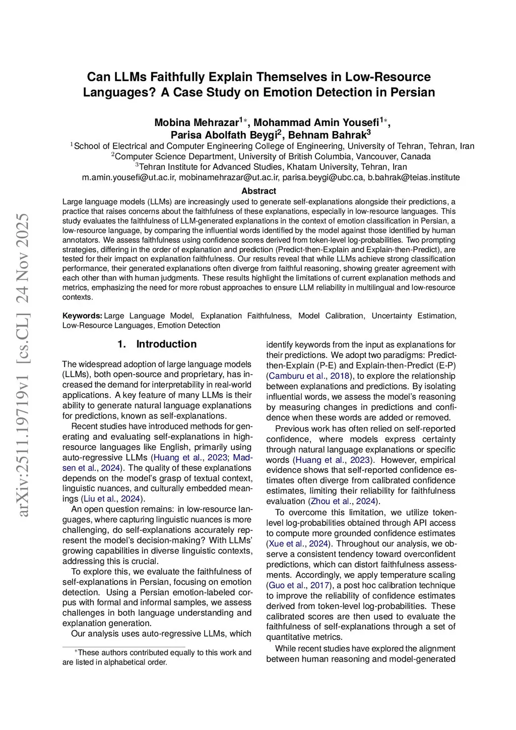 Can LLMs Faithfully Explain Themselves in Low-Resource Languages? A Case Study on Emotion Detection in Persian