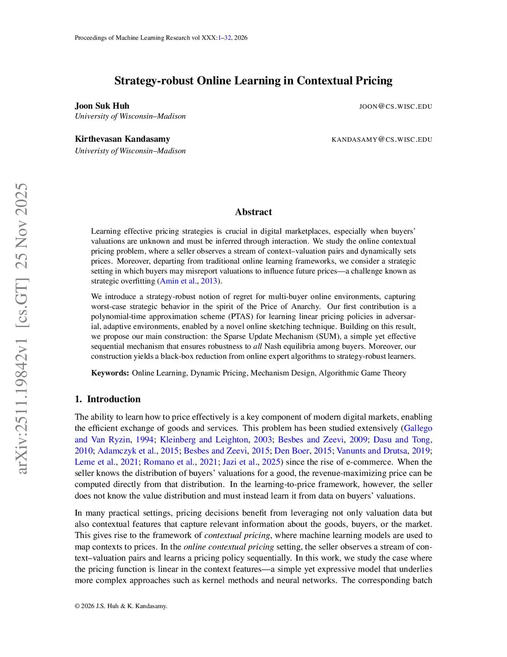 Learning effective pricing strategies is crucial in digital marketplaces, especially when buyers' valuations are unknown and must be inferred through interaction. We study the online contextual pricing problem, where a seller observes a stream of context-valuation pairs and dynamically sets prices. Moreover, departing from traditional online learning frameworks, we consider a strategic setting in which buyers may misreport valuations to influence future prices, a challenge known as strategic overfitting (Amin et al. 2013).We introduce a strategy-robust notion of regret for multi-buyer online environments, capturing worst-case strategic behavior in the spirit of the Price of Anarchy. Our first contribution is a polynomial-time approximation scheme (PTAS) for learning linear pricing policies in adversarial, adaptive environments, enabled by a novel online sketching technique. Building on this result, we propose our main construction: the Sparse Update Mechanism (SUM), a simple yet effective sequential mechanism that ensures robustness to all Nash equilibria among buyers. Moreover, our construction yields a black-box reduction from online expert algorithms to strategy-robust learners.