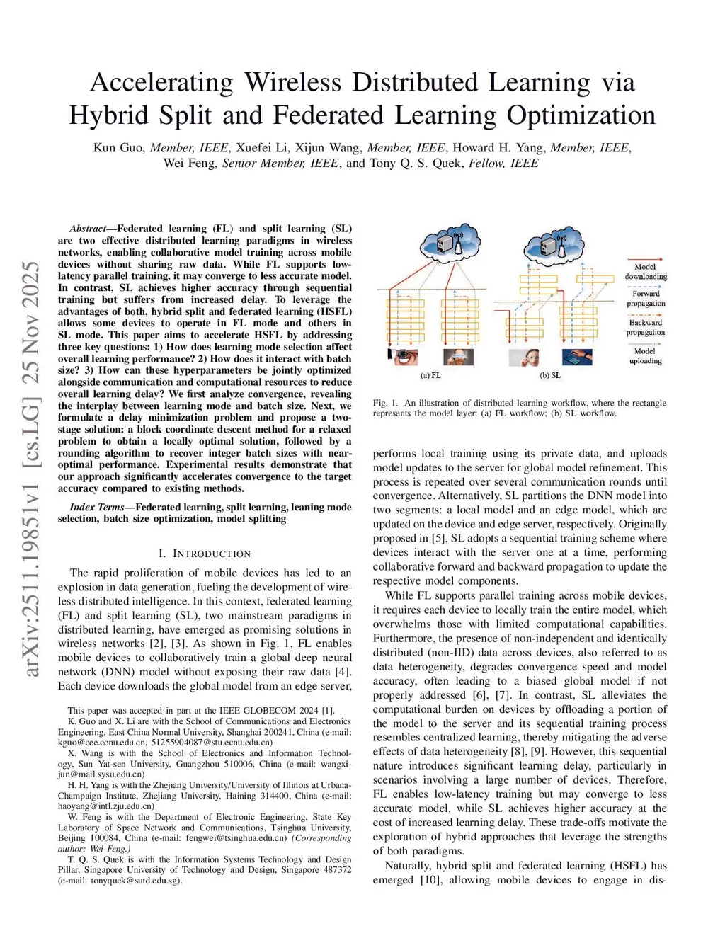 Accelerating Wireless Distributed Learning via Hybrid Split and Federated Learning Optimization