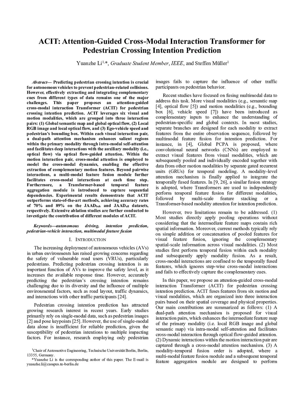 ACIT: Attention-Guided Cross-Modal Interaction Transformer for Pedestrian Crossing Intention Prediction