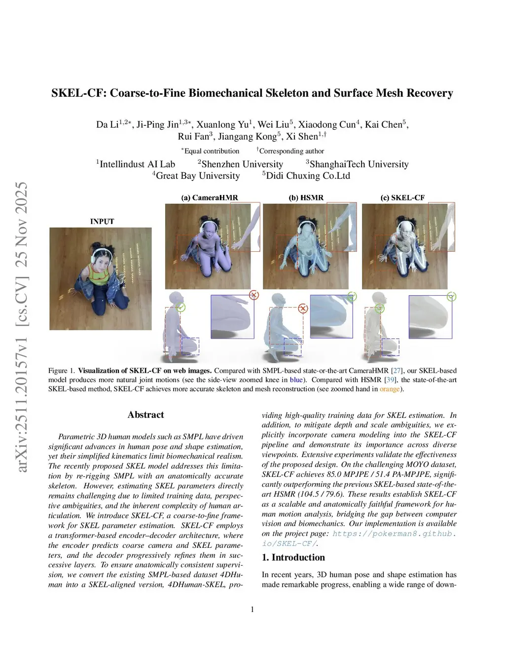 SKEL-CF: Coarse-to-Fine Biomechanical Skeleton and Surface Mesh Recovery