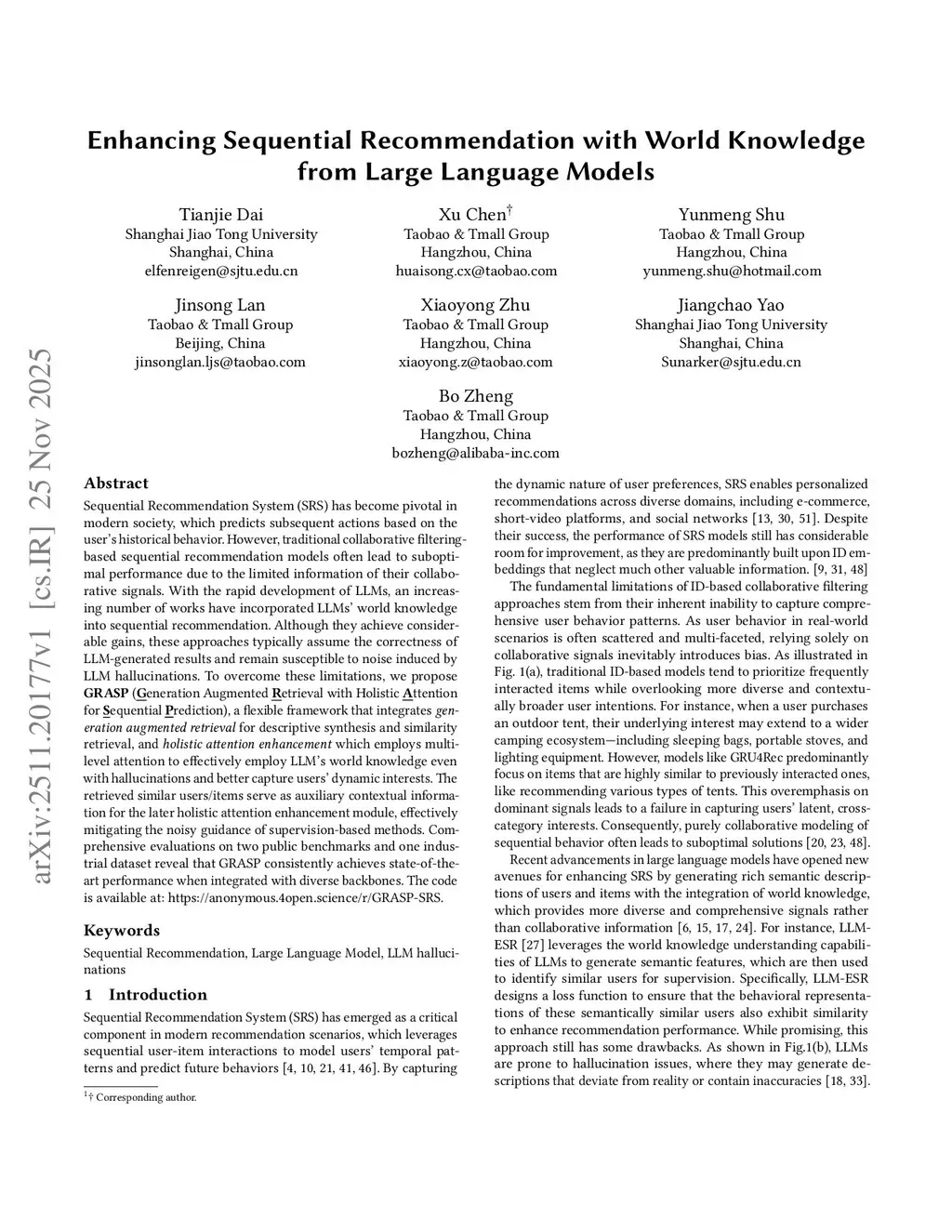 Sequential Recommendation System~(SRS) has become pivotal in modern society, which predicts subsequent actions based on the user's historical behavior. However, traditional collaborative filtering-based sequential recommendation models often lead to suboptimal performance due to the limited information of their collaborative signals. With the rapid development of LLMs, an increasing number of works have incorporated LLMs' world knowledge into sequential recommendation. Although they achieve considerable gains, these approaches typically assume the correctness of LLM-generated results and remain susceptible to noise induced by LLM hallucinations. To overcome these limitations, we propose GRASP (Generation Augmented Retrieval with Holistic Attention for Sequential Prediction), a flexible framework that integrates generation augmented retrieval for descriptive synthesis and similarity retrieval, and holistic attention enhancement which employs multi-level attention to effectively employ LLM's world knowledge even with hallucinations and better capture users' dynamic interests. The retrieved similar users/items serve as auxiliary contextual information for the later holistic attention enhancement module, effectively mitigating the noisy guidance of supervision-based methods. Comprehensive evaluations on two public benchmarks and one industrial dataset reveal that GRASP consistently achieves state-of-the-art performance when integrated with diverse backbones. The code is available at:this https URL.