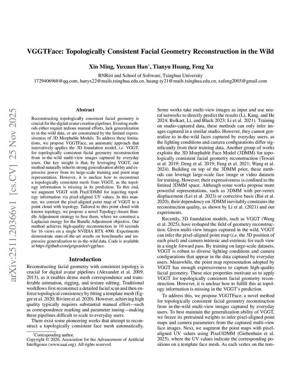 VGGTFace: Topologically Consistent Facial Geometry Reconstruction in the Wild