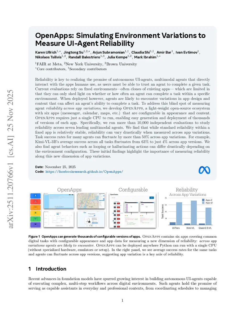 OpenApps: Simulating Environment Variations to Measure UI-Agent Reliability