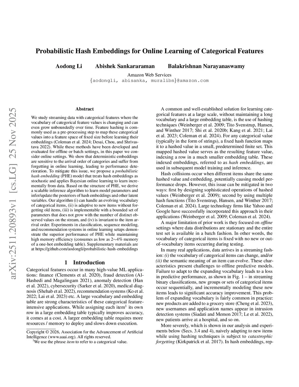 Probabilistic Hash Embeddings for Online Learning of Categorical Features