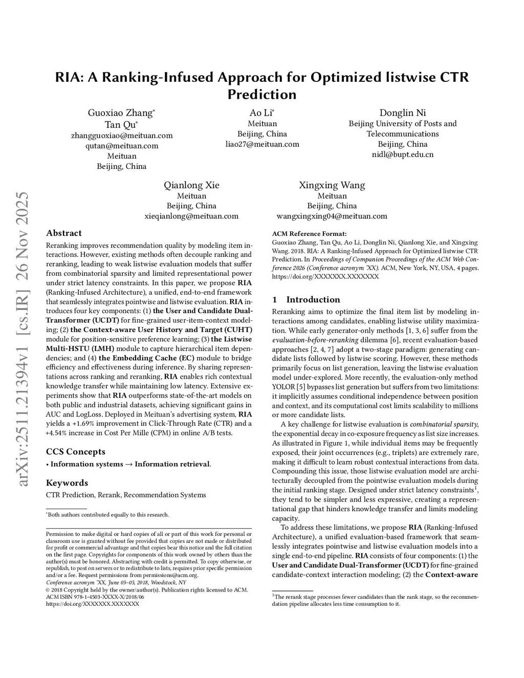 RIA: A Ranking-Infused Approach for Optimized listwise CTR Prediction