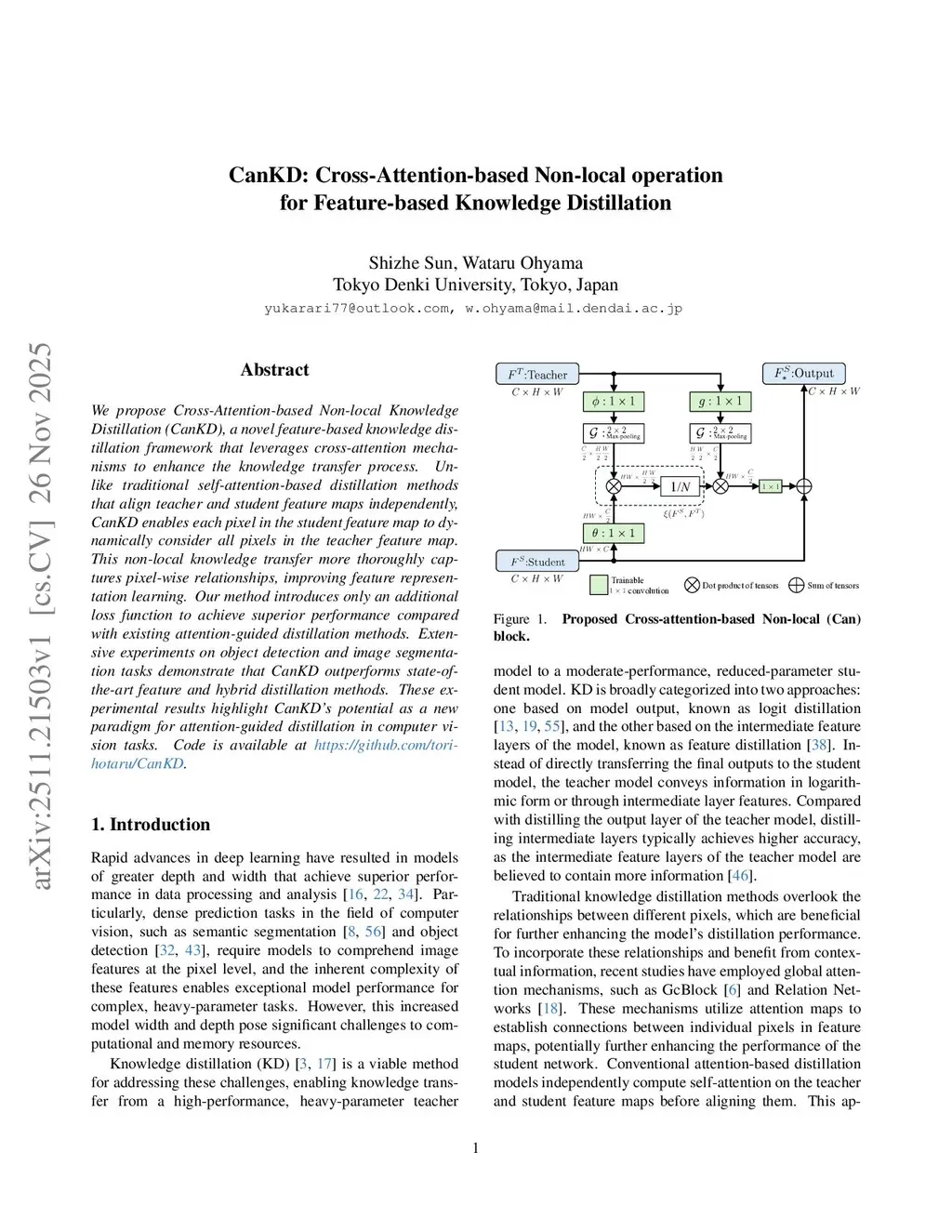 CanKD: Cross-Attention-based Non-local operation for Feature-based Knowledge Distillation