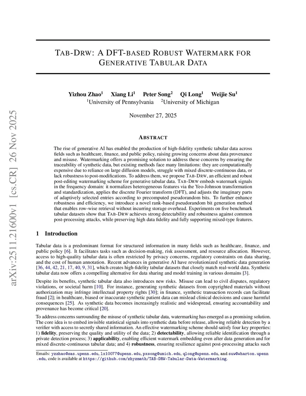 TAB-DRW: A DFT-based Robust Watermark for Generative Tabular Data