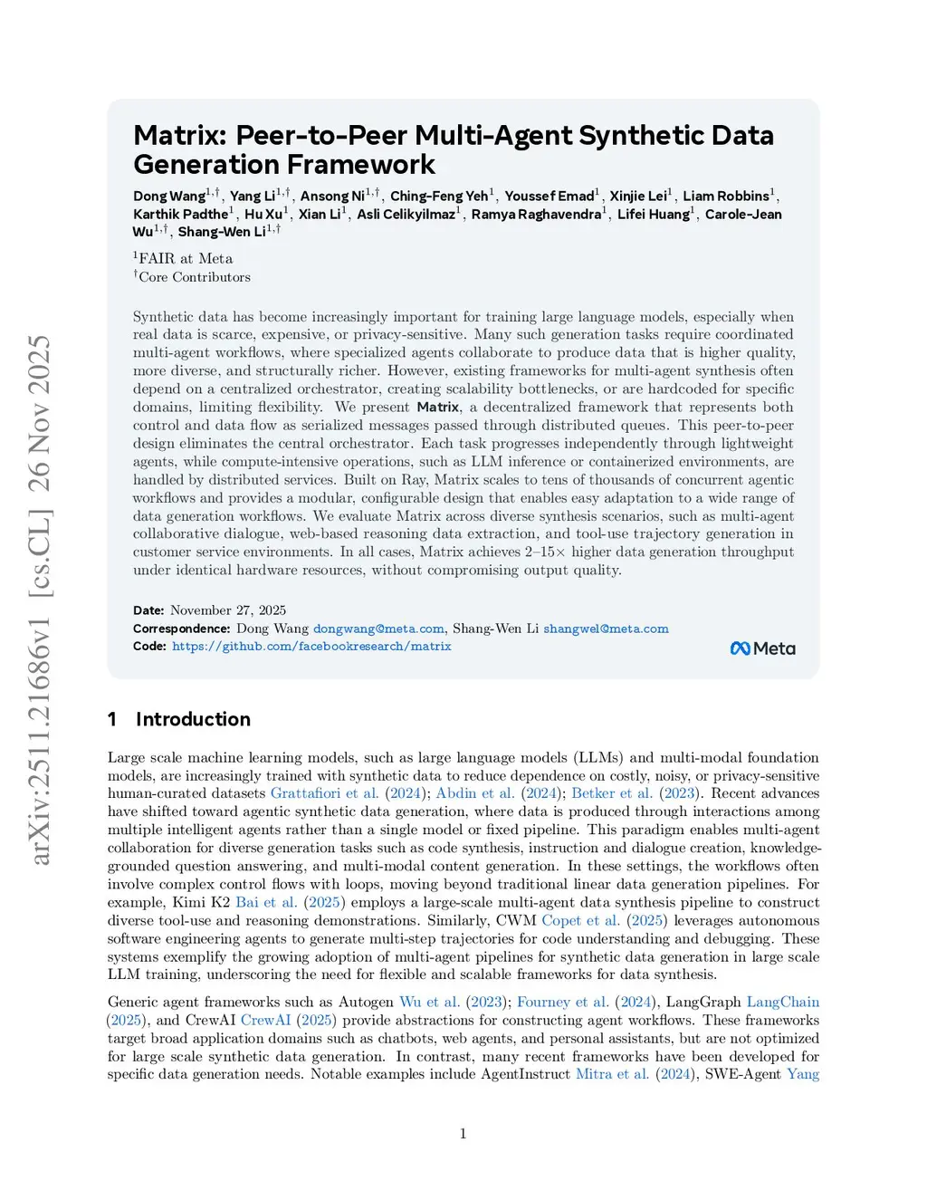 Matrix: Peer-to-Peer Multi-Agent Synthetic Data Generation Framework