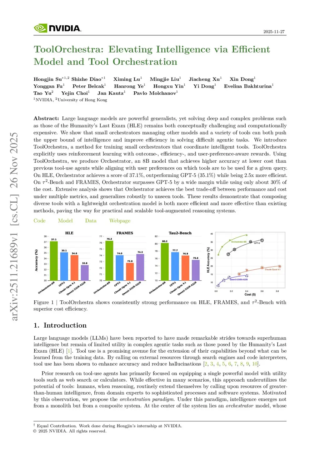 ToolOrchestra: Elevating Intelligence via Efficient Model and Tool Orchestration
