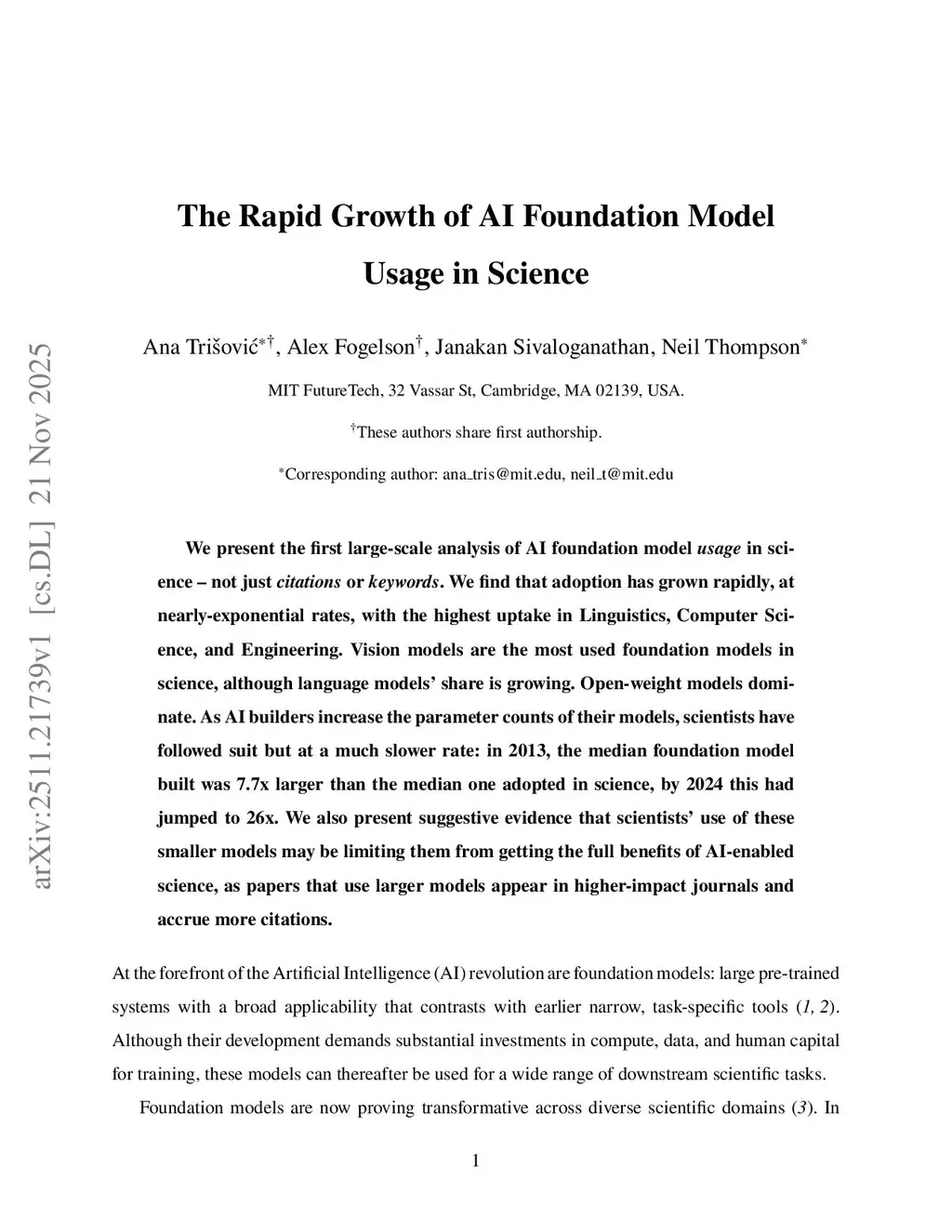 The Rapid Growth of AI Foundation Model Usage in Science