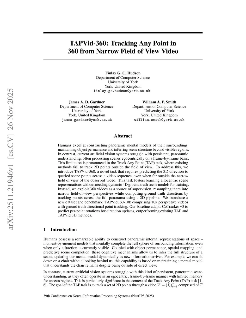 Humans excel at constructing panoramic mental models of their surroundings, maintaining object permanence and inferring scene structure beyond visible regions. In contrast, current artificial vision systems struggle with persistent, panoramic understanding, often processing scenes egocentrically on a frame-by-frame basis. This limitation is pronounced in the Track Any Point (TAP) task, where existing methods fail to track 2D points outside the field of view. To address this, we introduce TAPVid-360, a novel task that requires predicting the 3D direction to queried scene points across a video sequence, even when far outside the narrow field of view of the observed video. This task fosters learning allocentric scene representations without needing dynamic 4D ground truth scene models for training. Instead, we exploit 360 videos as a source of supervision, resampling them into narrow field-of-view perspectives while computing ground truth directions by tracking points across the full panorama using a 2D pipeline. We introduce a new dataset and benchmark, TAPVid360-10k comprising 10k perspective videos with ground truth directional point tracking. Our baseline adapts CoTracker v3 to predict per-point rotations for direction updates, outperforming existing TAP and TAPVid 3D methods. Project page:this https URL